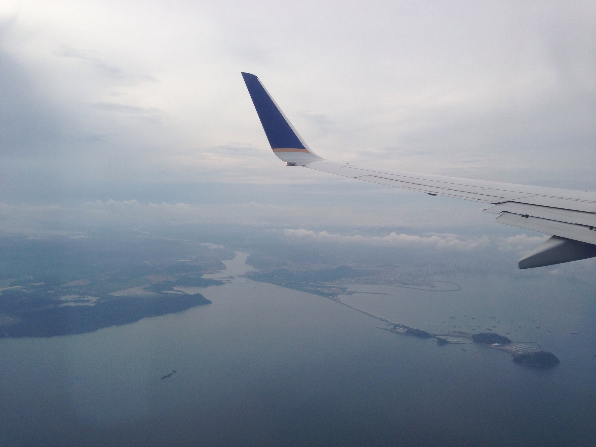 Un volo tranquillo, che é entrato nel golfo quasi al tramonto e ci ha fatto vedere il canale dal cielo.